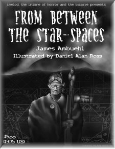 FROM BETWEEN THE STAR-SPACES, by James Ambuehl. Cover and interior artwork by Daniel Alan Ross. Scarborough, Ontario: Imelod Publications, 1998. 49 pp. $3.75 (US)/$5.00 (CAN). Cover illustration © Daniel Alan Ross. |